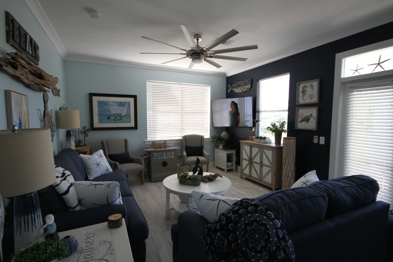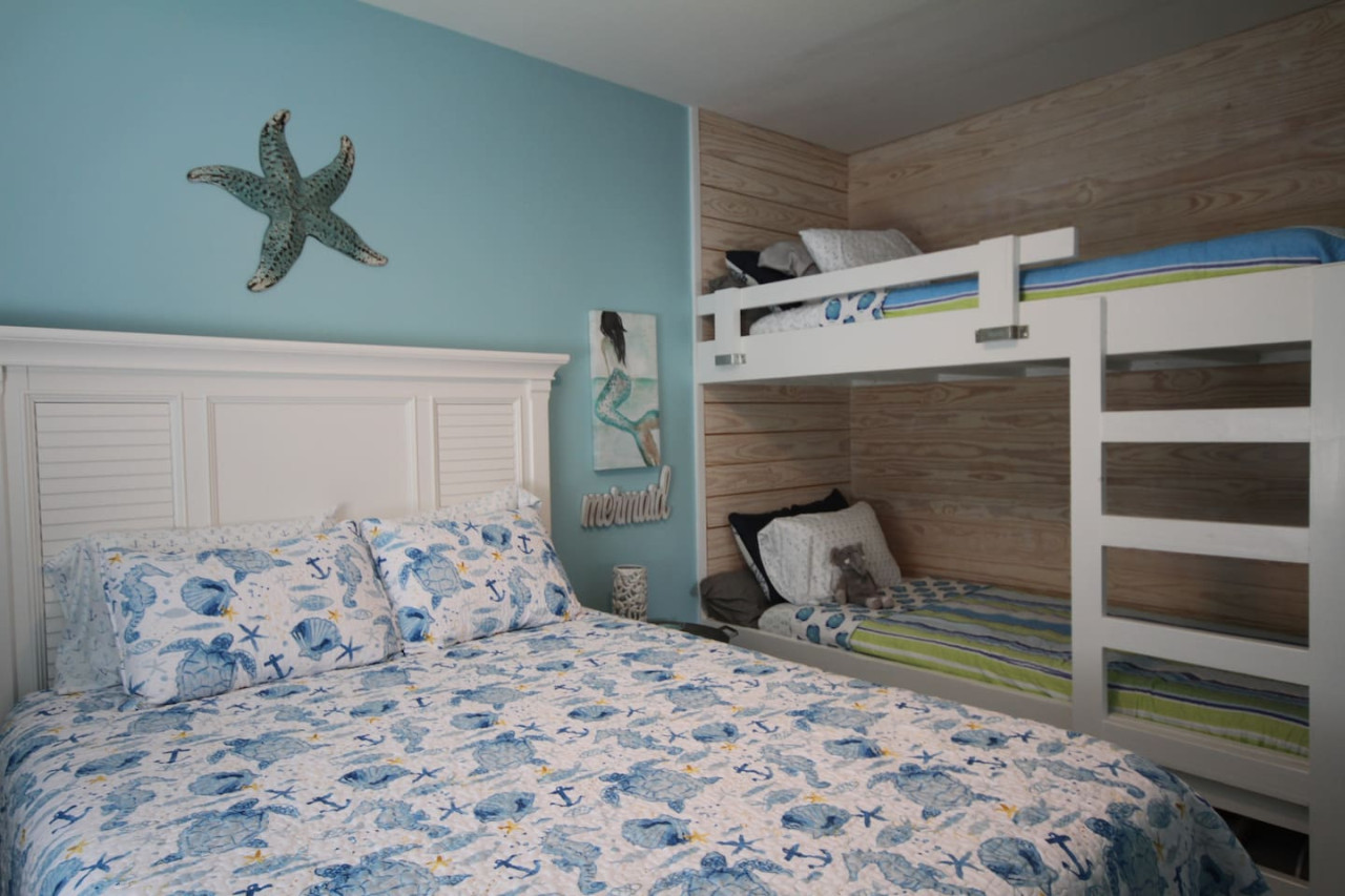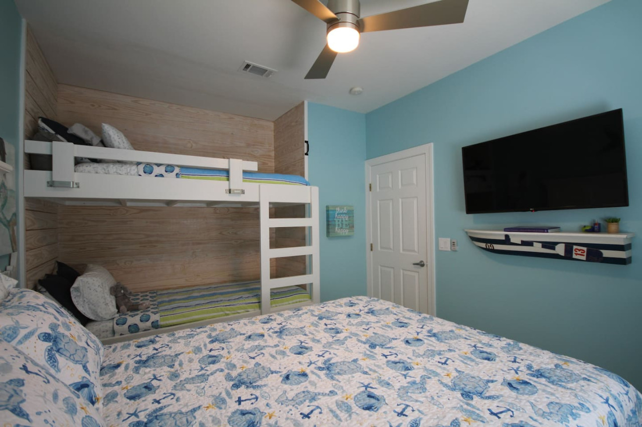 June 2025 5.00Loved staying at the Pearl! This home is perfect for two families going together! We had plenty of space! The home is decorated beautifully! plenty of everything you need! Very close to the beach, a short five minute walk. The only suggestion i would have, is the upper level of the home needs a few windows to be covered with blinds. Everything else was great!